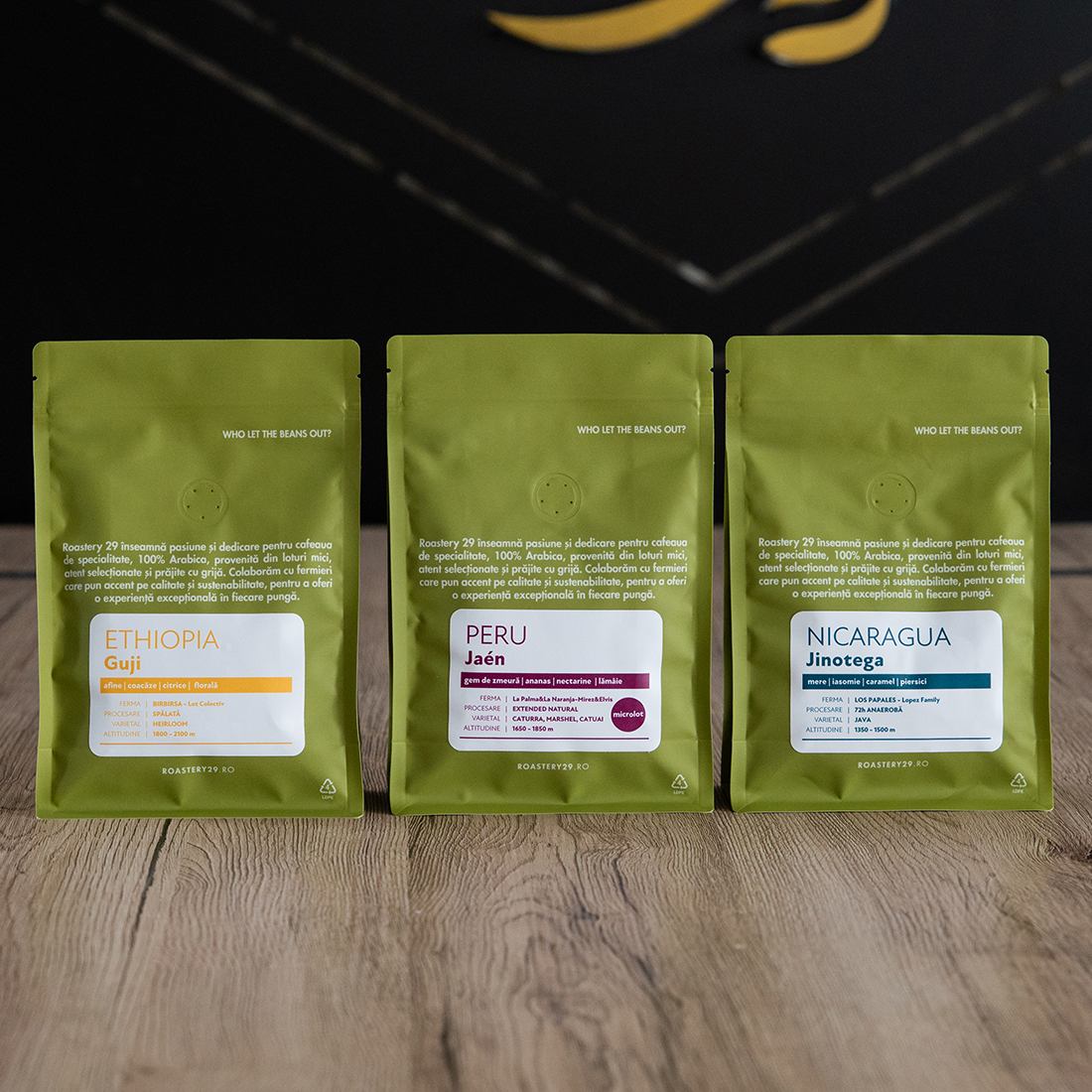 Nicaragua Jinotega: Cafeaua este recoltată cu 94% cireșe complet coapte, depulpificatǎ mecanic și plasată în recipiente sigilate pentru o fermentație complet anaerobă timp de 72 de ore. Apoi este spălată și uscată pe paturi africane ridicate. Etapa de uscare durează aproximativ 14 zile.